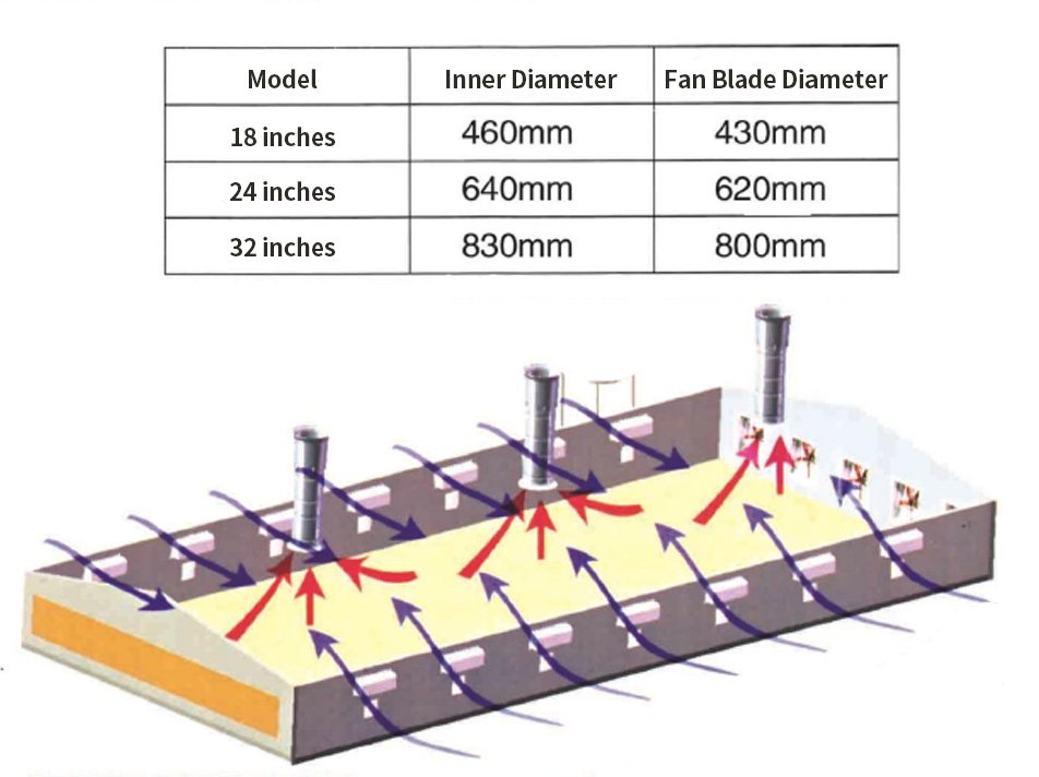 The fan is equipped with an electric check valve controller that synchronously manages the opening and closing of the check