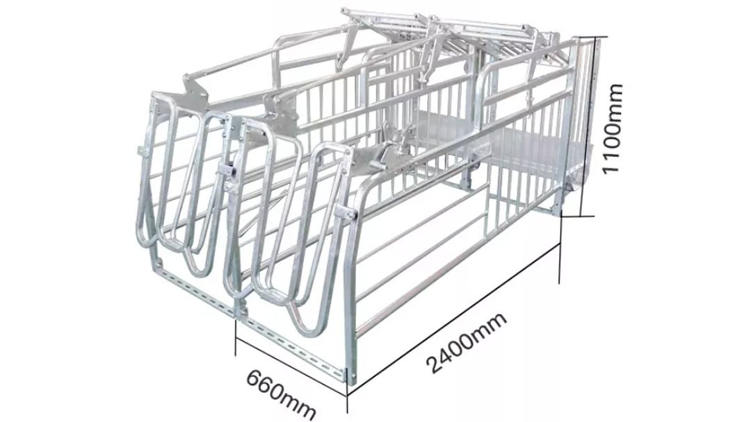 First, consider the size of the gestation crate. Sows need enough space to turn around and lie down comfortably, so the crate should be spacious enough. The crate's length should also be long enough to allow the sow to lie down without getting squeezed by other pigs.
