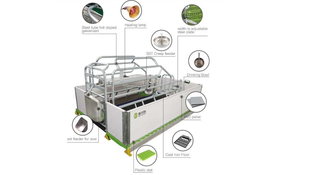 Comprehensive Accessories for Piglet Care We understand the significance of providing a nurturing environment for piglets during the critical early stages. Our farrowing crate is equipped with a range of essential accessories, including feeders, water bowls, incubators, and heating pads. These accessories contribute to creating an optimal environment for piglet growth and well-being, enabling them to thrive under the best possible conditions.