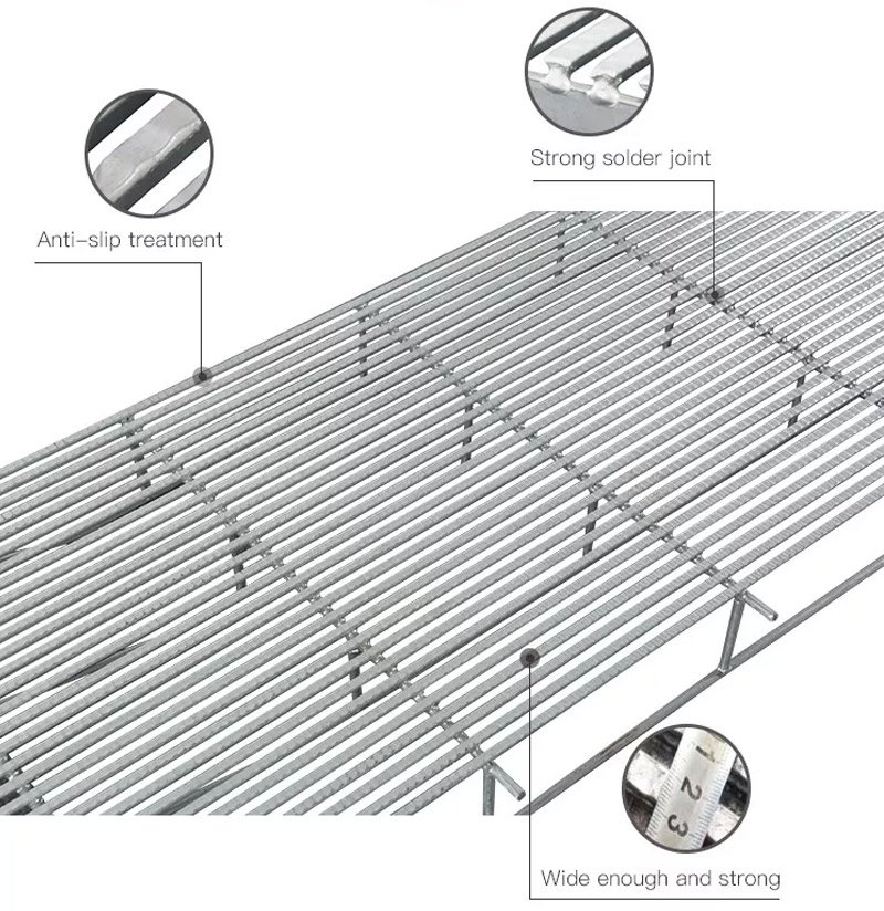 Deba Brothers presents the innovative Galvanized Triangular Bar (TriDEK) Flooring System, a superior choice for nursery pig and farrowing barn applications. Crafted to deliver exceptional performance, TriDEK floors are constructed from rolled steel rods boasting a tensile strength of 80,000 psi and a hardness of 95 Rb. These rods are precision-cut and then resistance welded to a 13/32” diameter cross rod. As a pioneer in the swine industry, Deba Brothers is the sole manufacturer offering resistance welded metal flooring solutions.