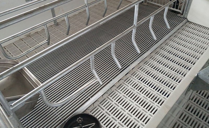 Deba Brothers' ingenious combination of cast iron and TriDEK farrowing floor ensures a sturdy and comfortable environment for sows and piglets alike. The cast iron center sections contribute to sow cooling, while the TriDEK creep flooring sections complete the farrowing crate floor assembly.